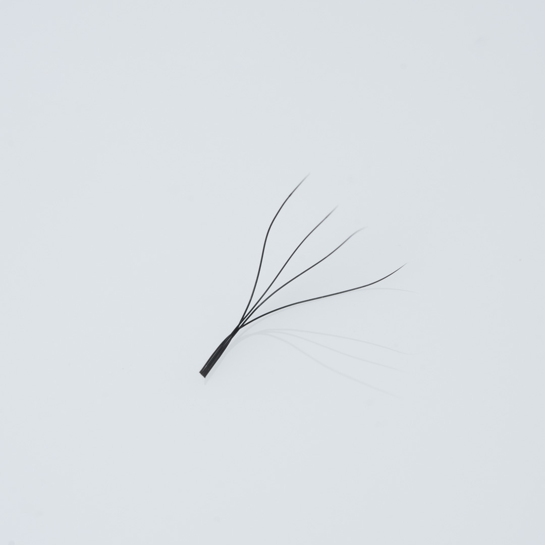 Κάθε τουφάκι αποτελείται από 4 εξαιρετικά λεπτές τρίχες, ενωμένες με τεχνική ακρίβεια. Το μυστικό της επιτυχίας τους βρίσκεται στο ειδικά σχεδιασμένο σώμα (“ποδαράκι”) που διαθέτουν. Αυτή η δομή εξασφαλίζει πολύ μεγαλύτερη επιφάνεια επαφής με τη φυσική βλεφαρίδα κατά την τοποθέτηση. Το αποτέλεσμα; Συγκράτηση (retention) που ξεπερνά τις προσδοκίες, καθώς το τουφάκι “αγκαλιάζει” και κλειδώνει πάνω στη φυσική τρίχα, ενώ η εφαρμογή παραμένει τόσο απλή όσο η τεχνική One by One.